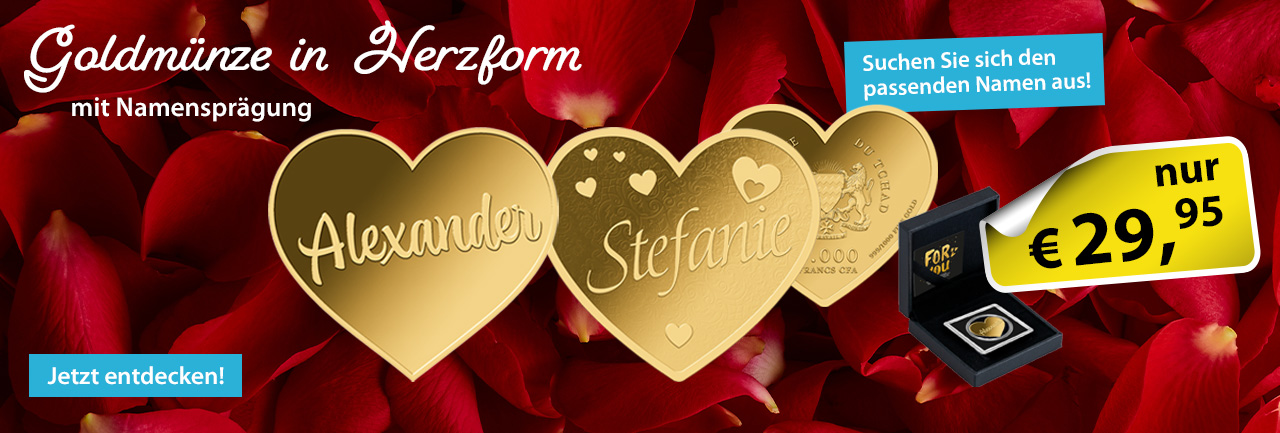 Erleben Sie bei Primus die ideale Verbindung von Wertschätzung, Eleganz und Individualität: Die herzförmige Goldmünze aus 999/1000 Feingold. Diese besondere Münze beeindruckt durch ihre einzigartige Form und die Möglichkeit zur individuellen Personalisierung mit einer großen Auswahl an Namen – perfekt als bleibendes Geschenk oder exklusives Sammlerstück.