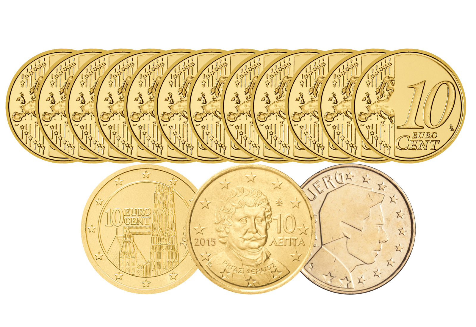 - 12 verschiedene 10-Cent-Münzen aus unterschiedlichen Ländern