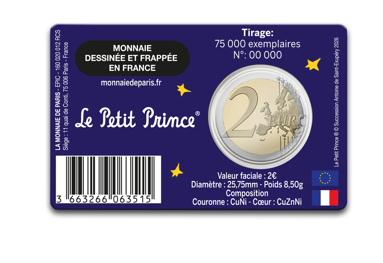 2 Euro 2026 Frankeich 80 Jahre "Der kleine Prinz" in Coincard Wolke