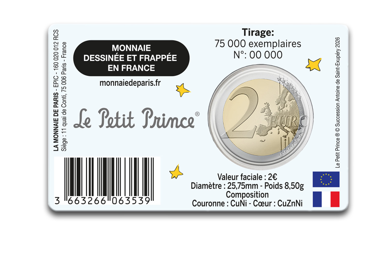 2 Euro 2026 Frankreich 80 Jahre "Der kleine Prinz" in Coincard Flugzeug