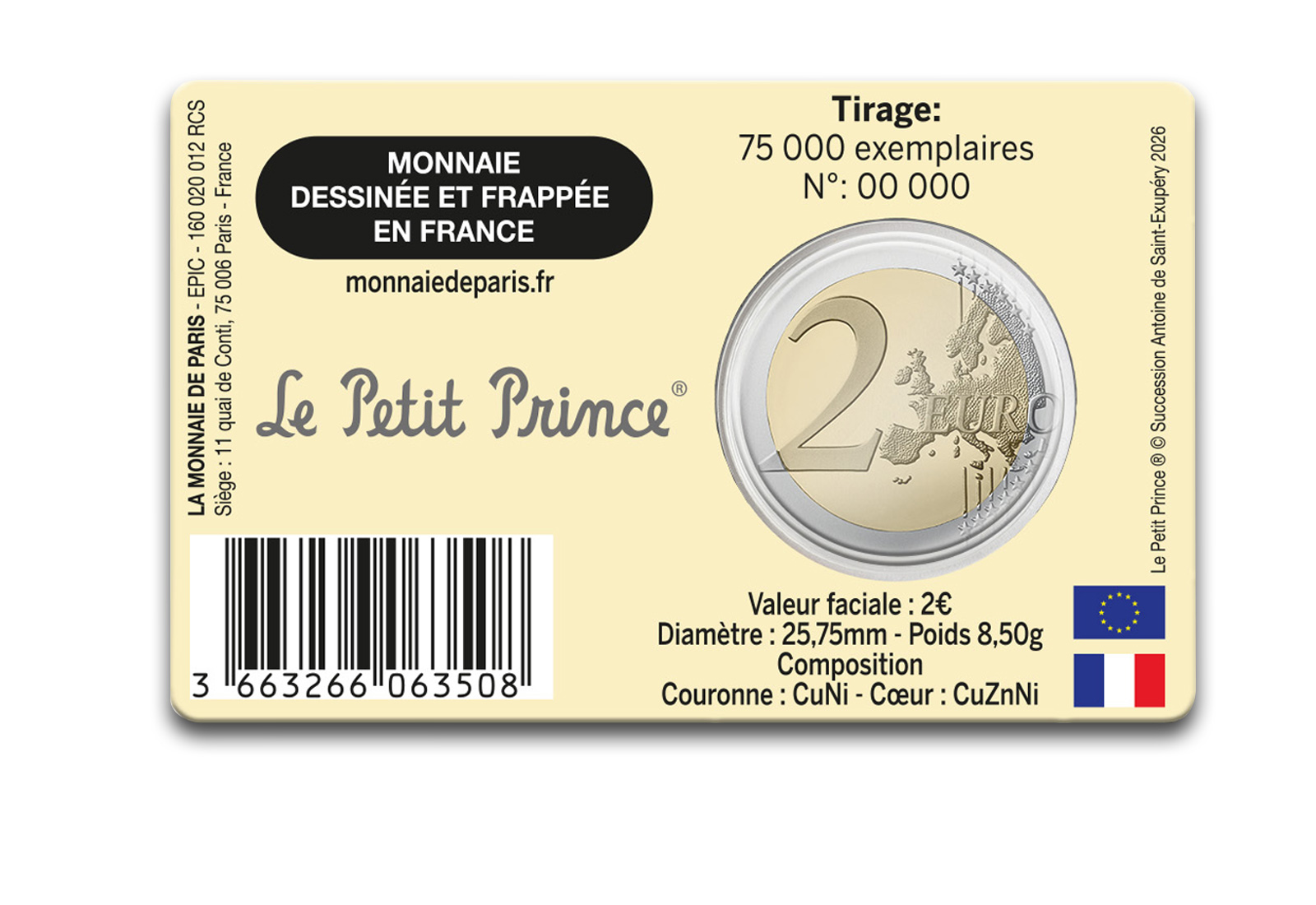 2 Euro 2026 Frankreich 80 Jahre "Der kleine Prinz" in Coincard Wüste
