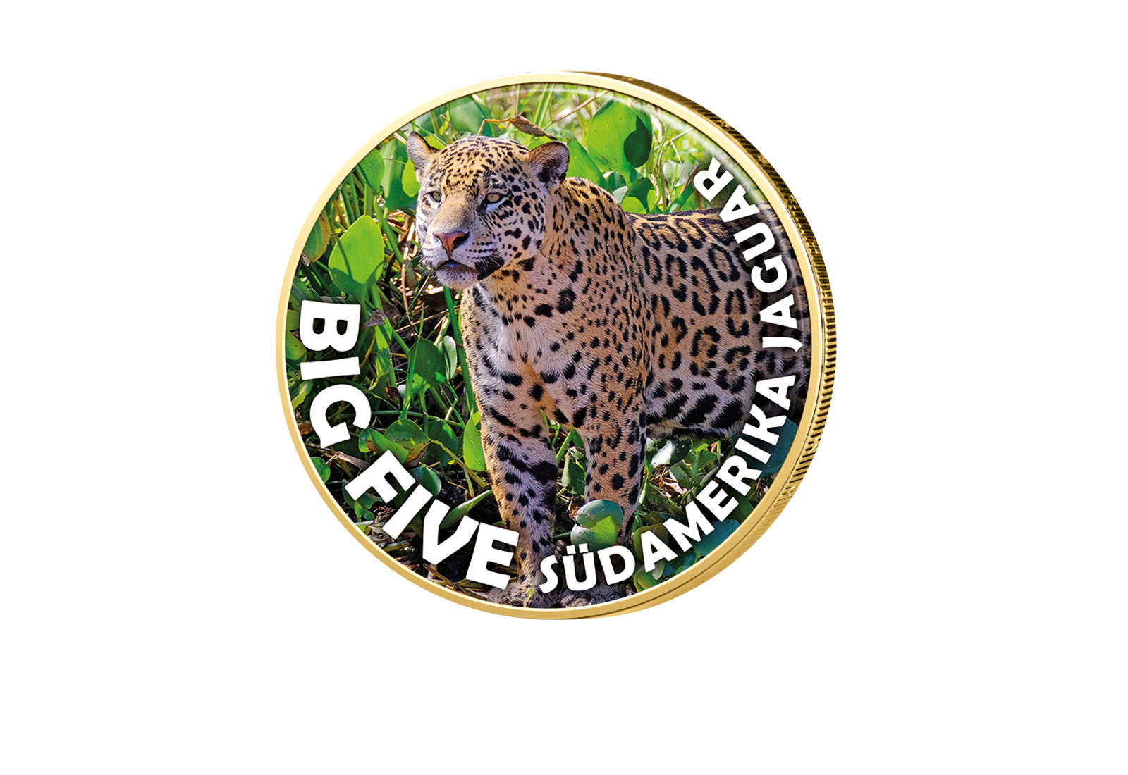 Die Big Five - Auch Südamerika beherbergt eine Reihe an faszinierenden und gleichzeitig gefährlichen Tierarten. Zu den bemerkenswerten Big Five Lateinamerikas gehört der große Riesenotter, die Anakonda, der Ameisenbär, der Jaguar und der Andenbär. Zu Ehren dieser prächtiger Tierarten präsentiert Ihnen PRIMUS die atemberaubende vergoldete 2 Euro-Münze mit dem Farbmotiv "Jaguar" aus der "Big Five - Südamerika"-Serie!