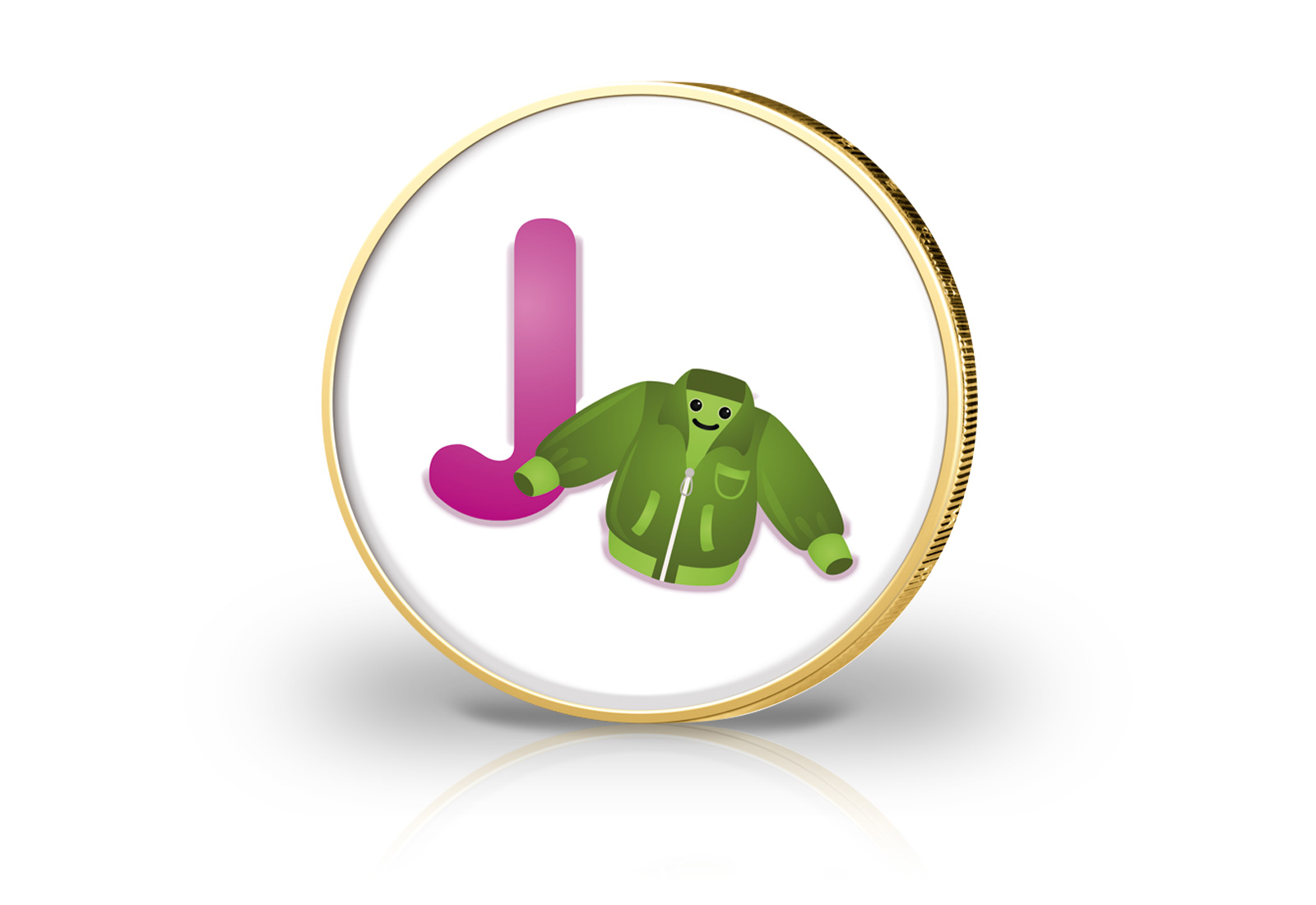 2 Euro Münze mit Farbmotiv "Buchstabe J - Mädchen"