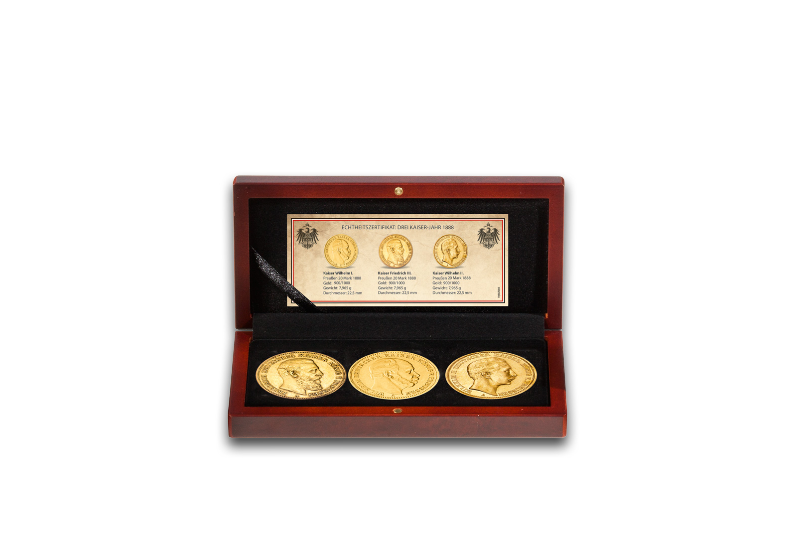Das Jahr 1888 ist eines der berühmtesten Jahre der deutschen Geschichte: Es ist das Jahr der 3 deutschen Kaiser. Es ist das Jahr, in dem 3 deutsche Kaiser sich auf Münzen verewigen ließen. Am 9. März 1888 starb Kaiser Wilhelm I., der im deutschen Volk hohes Ansehen genoss. Ihm folgte sein älterer Sohn als Kaiser Friedrich III. nach. Der bereits totkranke Friedrich III. regierte bis zu seinem Tode am 15 Juni 1888 nur 99 Tage. Sein Sohn bestieg als Wilhelm II. den Thron. Das Drei-Kaiser-Jahr war Auslöser für ein geflügeltes Wort im Volksmund: "Wilhelm I. war der greise Kaiser, Friedrich III. der weise Kaiser und Wilhelm II. der Reisekaiser". Das Drei-Kaiser-Jahr ist für Münzsammler ein Muss - es gilt das Jahr 1888 auf jeden Fall in der eigenen Sammlung zu dokumentieren.