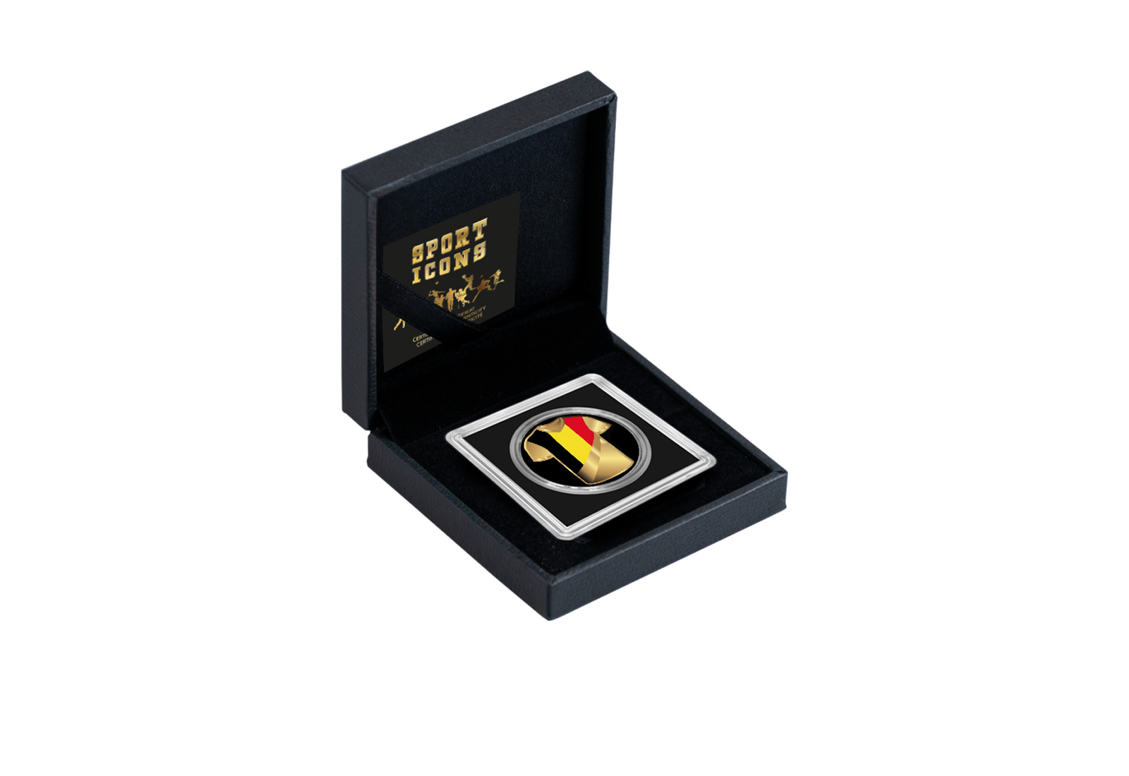 Die Vorderseite der Goldmünze präsentiert stolz die Farben Schwarz, Gelb und Rot des belgischen Trikots in einer ansprechenden, detailreichen Darstellung. Die Farben sind harmonisch angeordnet und spiegeln die nationale Flagge wider, was die Münze zu einem symbolträchtigen Sammlerstück macht. Die Feinheit von 999/1000 Gold sorgt dabei für eine zusätzliche Exklusivität.