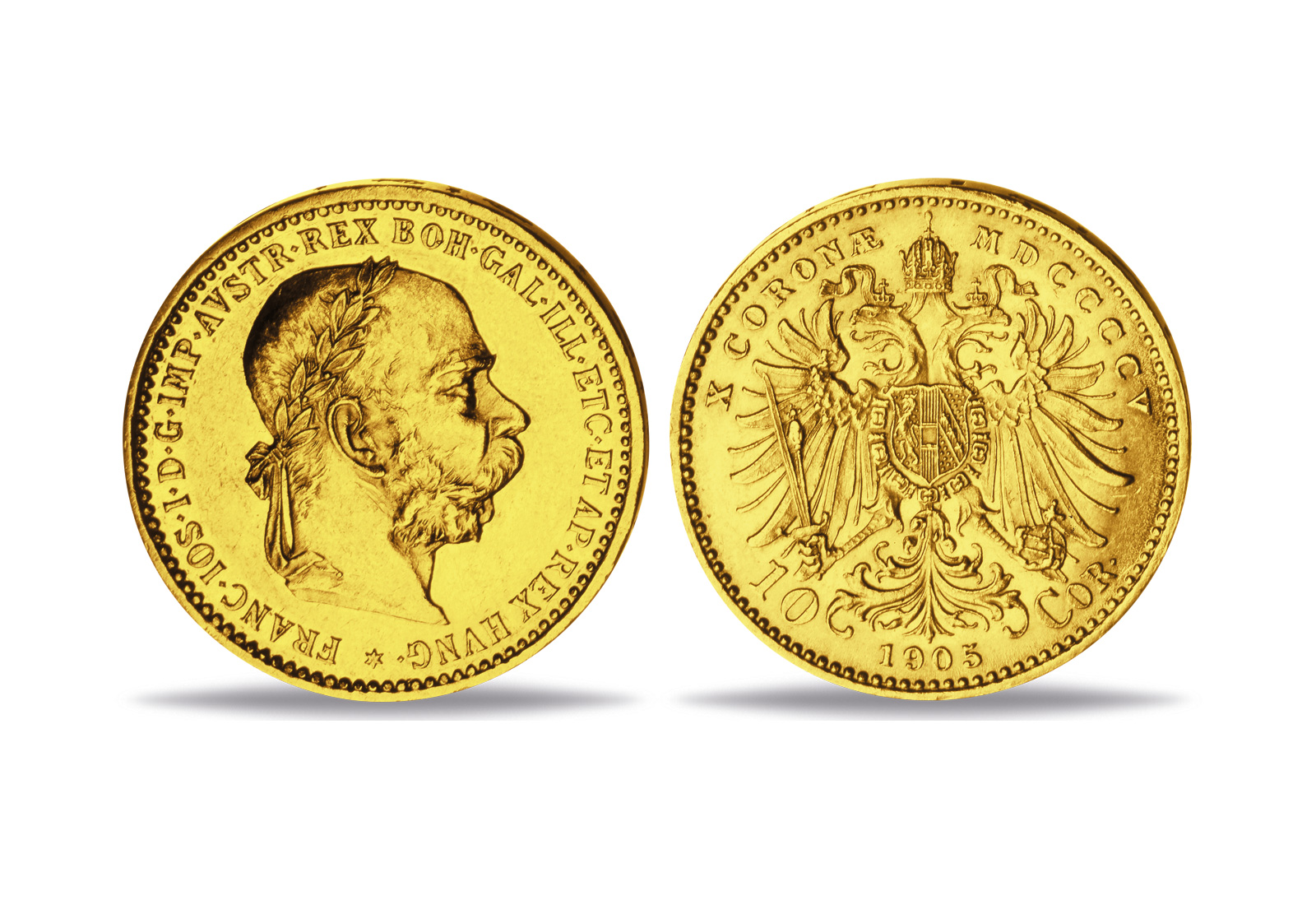 Das Set besteht aus drei Münzen, die alle auf der Motivseite die Profile der jeweiligen Kaiser zeigen und aus 900/1000 Gold gefertigt sind. Im Set enthalten ist die äußerst seltene 10 Franc-Münze mit dem Abbild von "Kaiser Napoleon III.", die zwischen 1861 und 1869 geprägt wurde. Ebenfalls Teil der Sammlung sind die 10 österreichischen Kronen, welche Kaiser Franz Joseph I. zeigen und von Österreich in den Jahren 1896 bis 1906 geprägt wurden. Abgerundet wird das Set durch die 10 Mark des Deutschen Reiches mit dem Konterfei von "Kaiser Wilhelm I.", die in der Zeit von 1872 bis 1888 geprägt wurden.