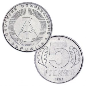 Noch vor der offiziellen Gründung der DDR (7. Oktober 1949) wurden am 1. April 1949 die ersten Münzen ausgegeben, zu Nominalwerten von 5 Pfennig und 10 Pfennig. Ein knappes Jahr später wurde eine Münze zu 1 Pfennig in Umlauf gebracht.