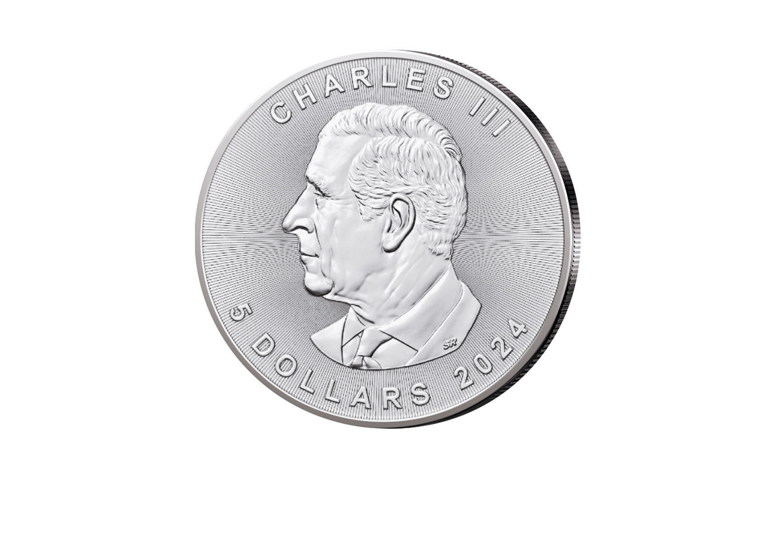 Die kanadische Silberanlagemünze (nach dem abgebildeten, im kanadischen Staatswappen verwendeten Ahornblatt Maple Leaf genannt) wird seit 1988 geprägt (1 Unze). Die Vorderseite zeigt das bekannte Ahornblatt, mit den Gewichts und Feinheitsangaben. Die Rückseite zeigt das Staatsoberhaupt König Charles III. und Nennwert und Jahreszahl.