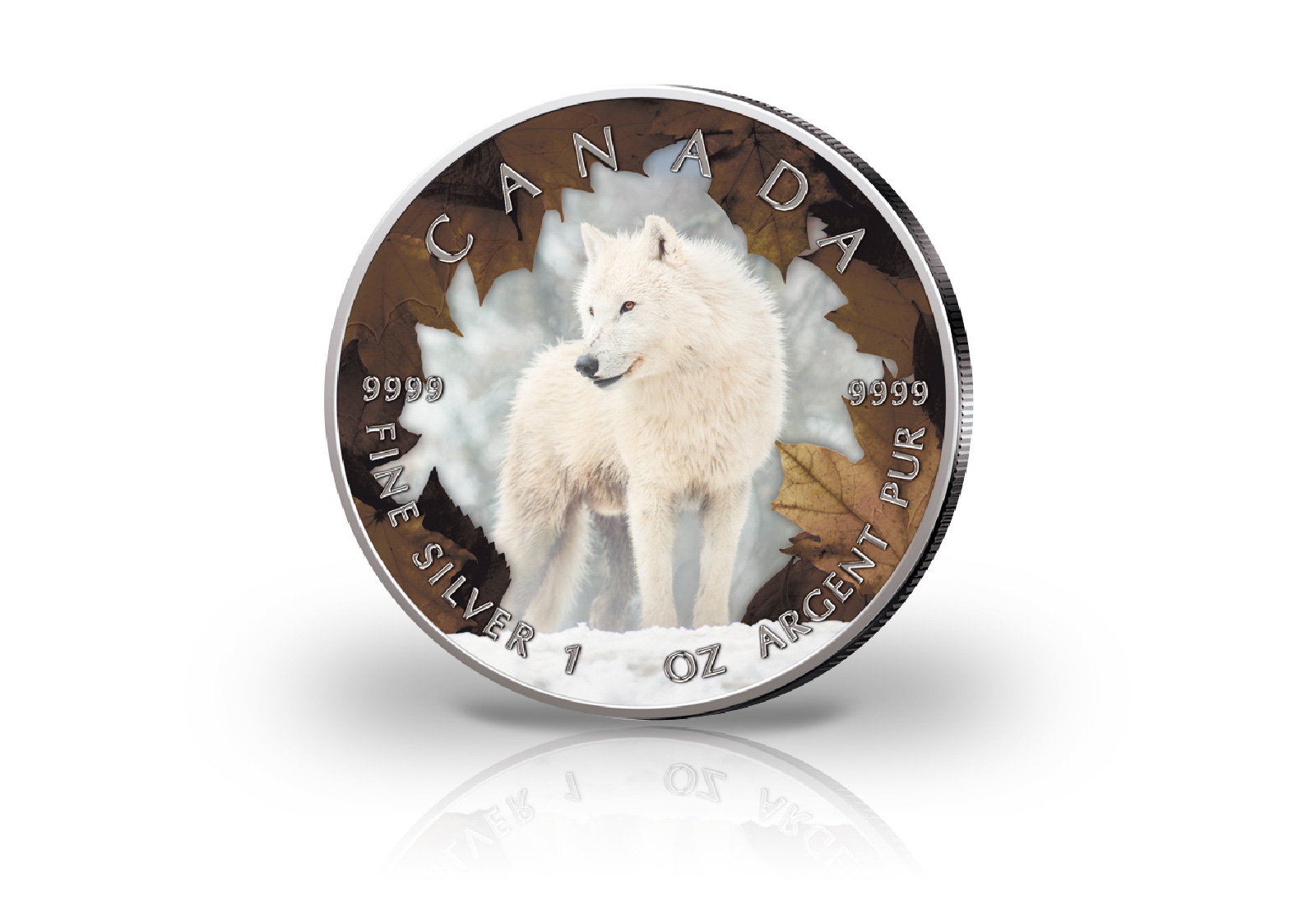 Maple Leaf 1 oz Silbermünze mit Farbmotiv Polarwolf